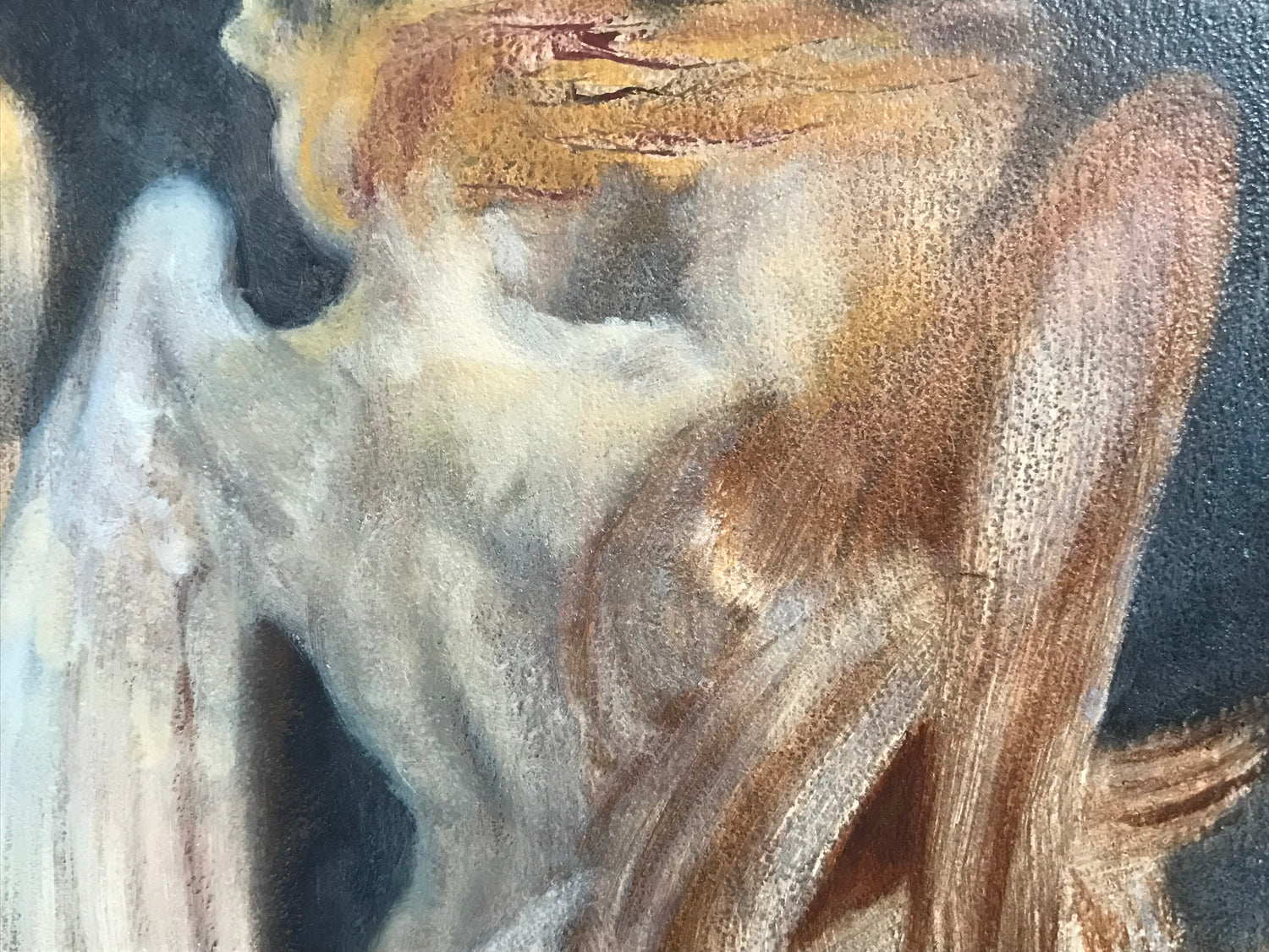 My desire to create relates to my lifelong attempts at answering the questions, “Who am I? Why am I here?” I have followed my intuitive guidance throughout my life, seeking beauty and inspiration in every circumstance. I am inspired by the light that softly shines in the darkest hour, and transformative experiences of the human psyche. I play with many juxtaposing themes in my work: the infinity of spiritual power and the frailty of the human condition, death and rebirth, eternity and impermanence, movement and stillness, levity and gravity, and virtues and passions. Through it all, a playful and light touch reminds us that, in the end, we are all characters in an epic story by an omnipotent author.