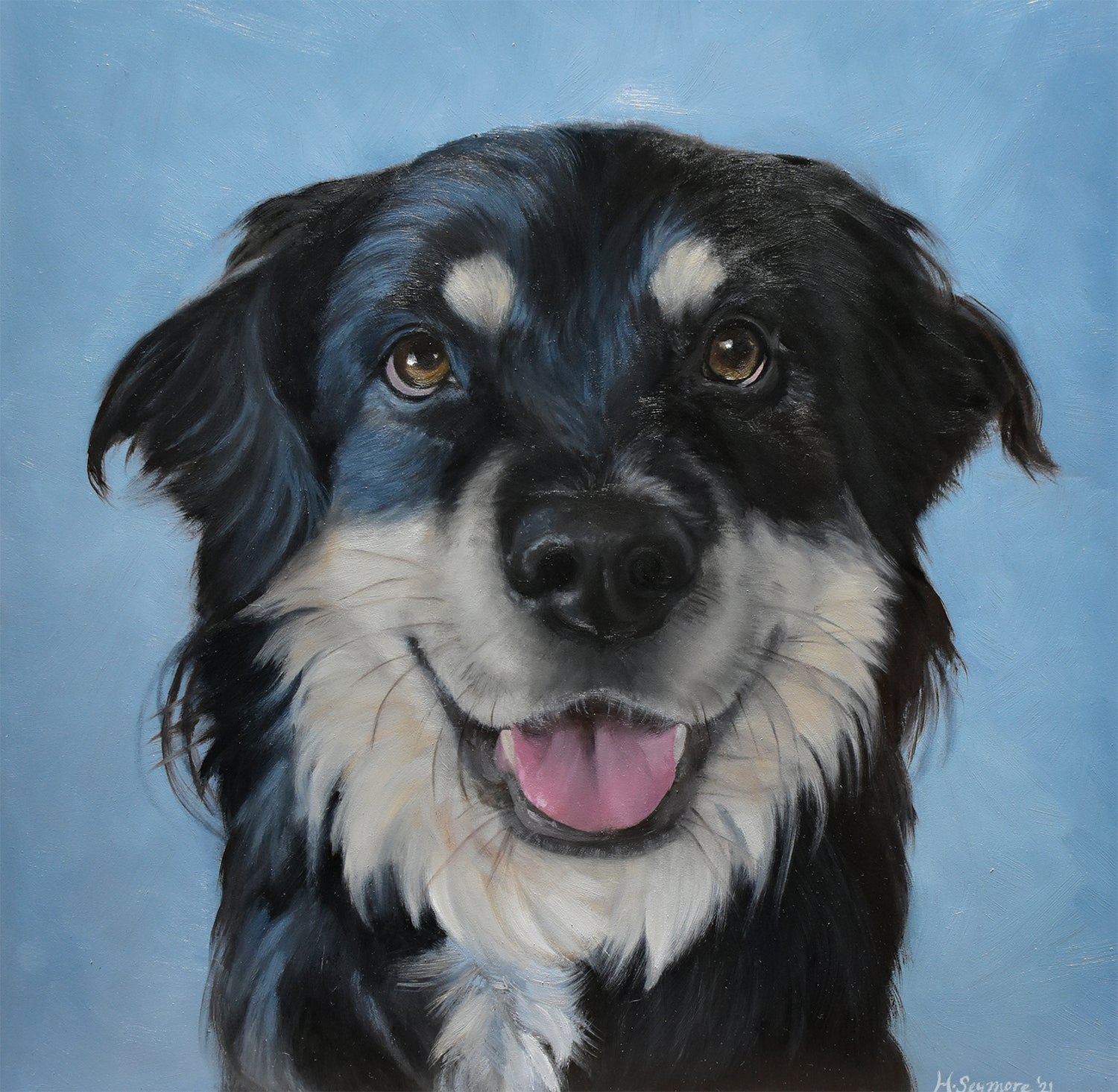 "I love it! His likeness and personality have been captured perfectly in this portrait. The attention to detail and colouring in his fur really make it feel like he is still here in the room with me - which always brings a smile to my face! There's a beautiful energy and brightness to the painting, so it will be a mainstay in my home." —Jack
